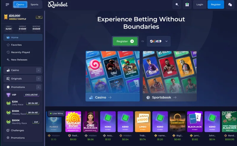 Rainbet is a cryptocurrency-focused online casino with sportsbook functionality that allows users to bet on multiple verticals from a single platform.